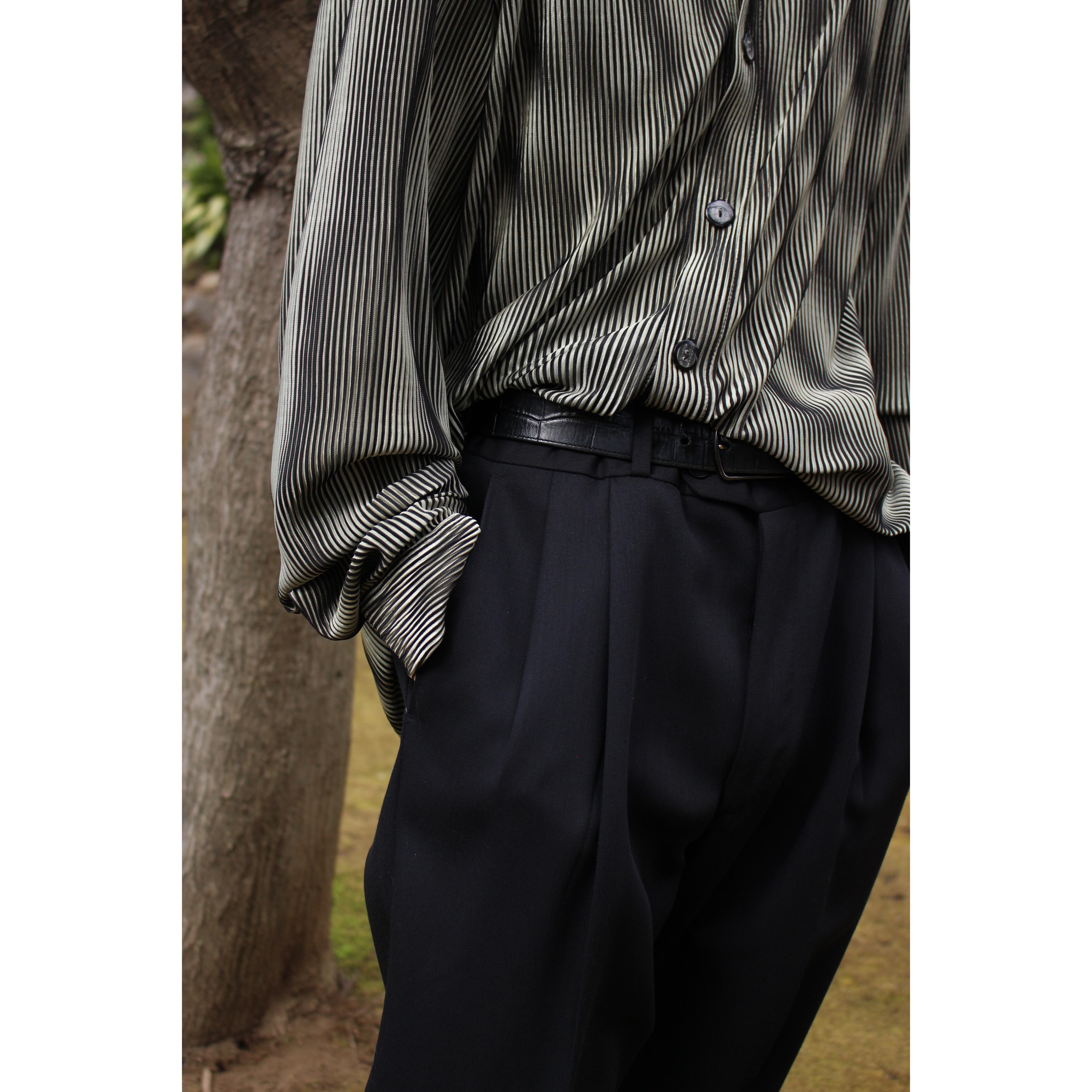 生地が軽やかなので、サラッと落ちて、ナチュラルに動く様にはとても美しく、春先にカシミヤニットでラフに合わせて履きたい一本ですね◎