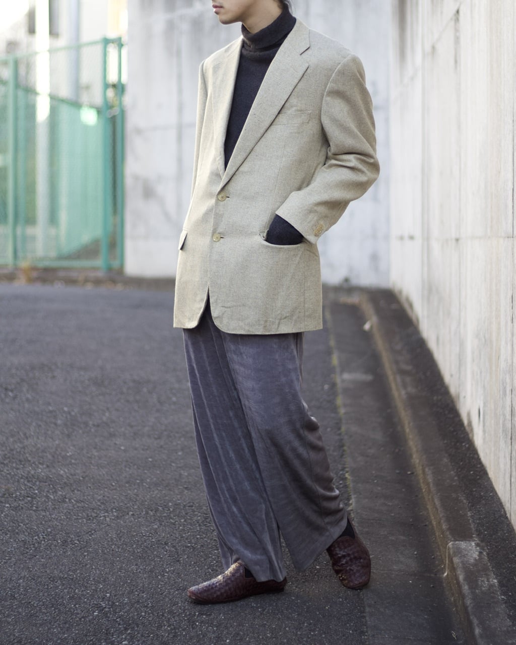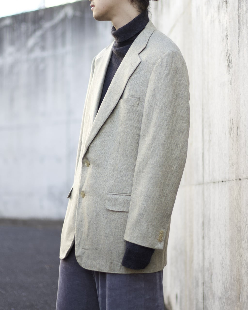カシミヤ素材のテーラードジャケットは本当に少なく中でも100%カシミヤがとても触り心地も良くこの時期に雰囲気を出せるジャケット。