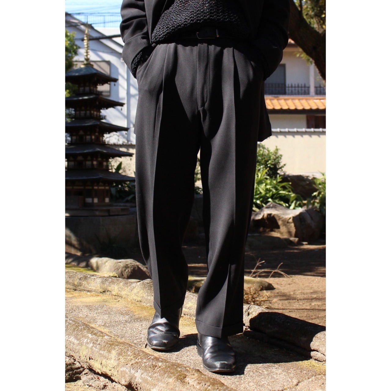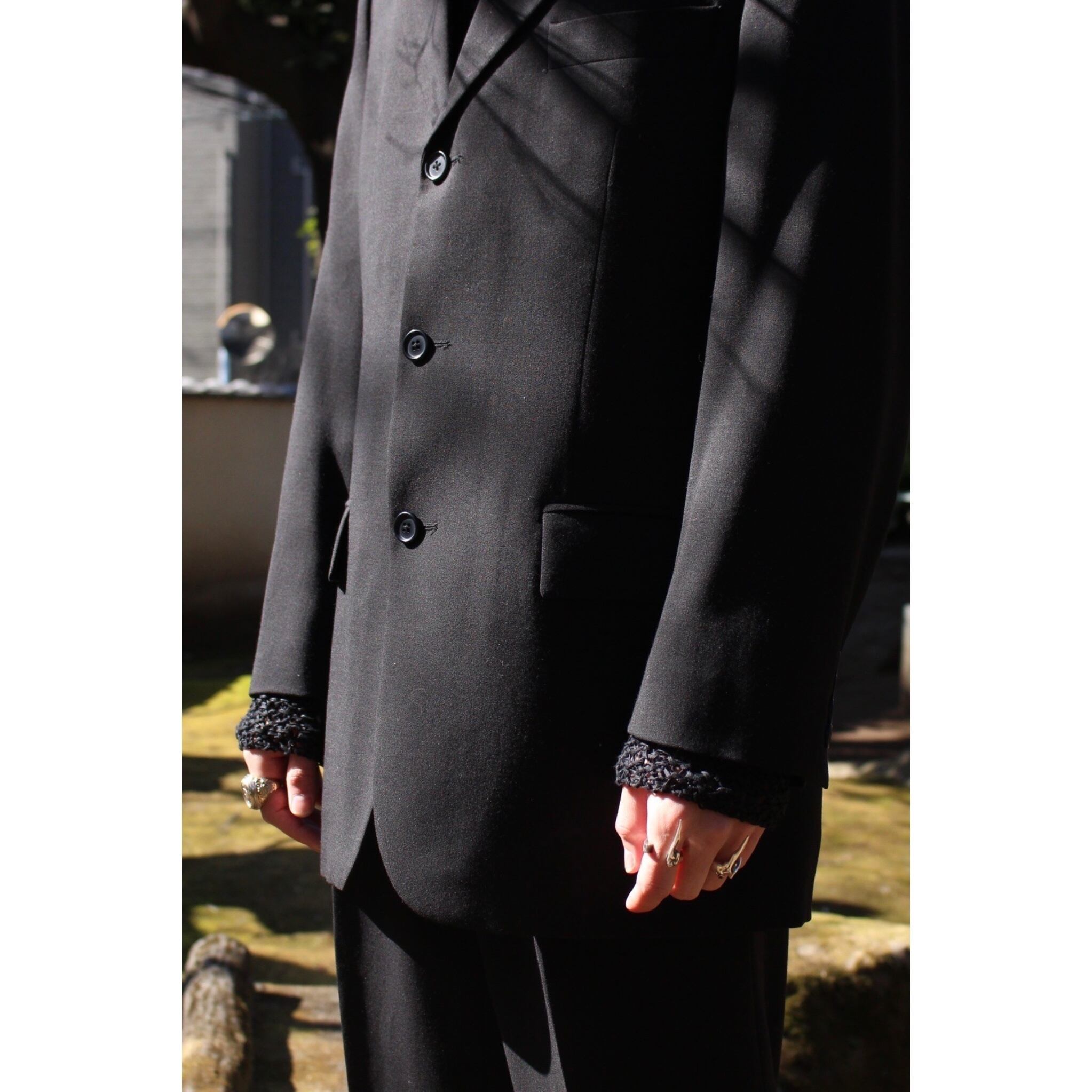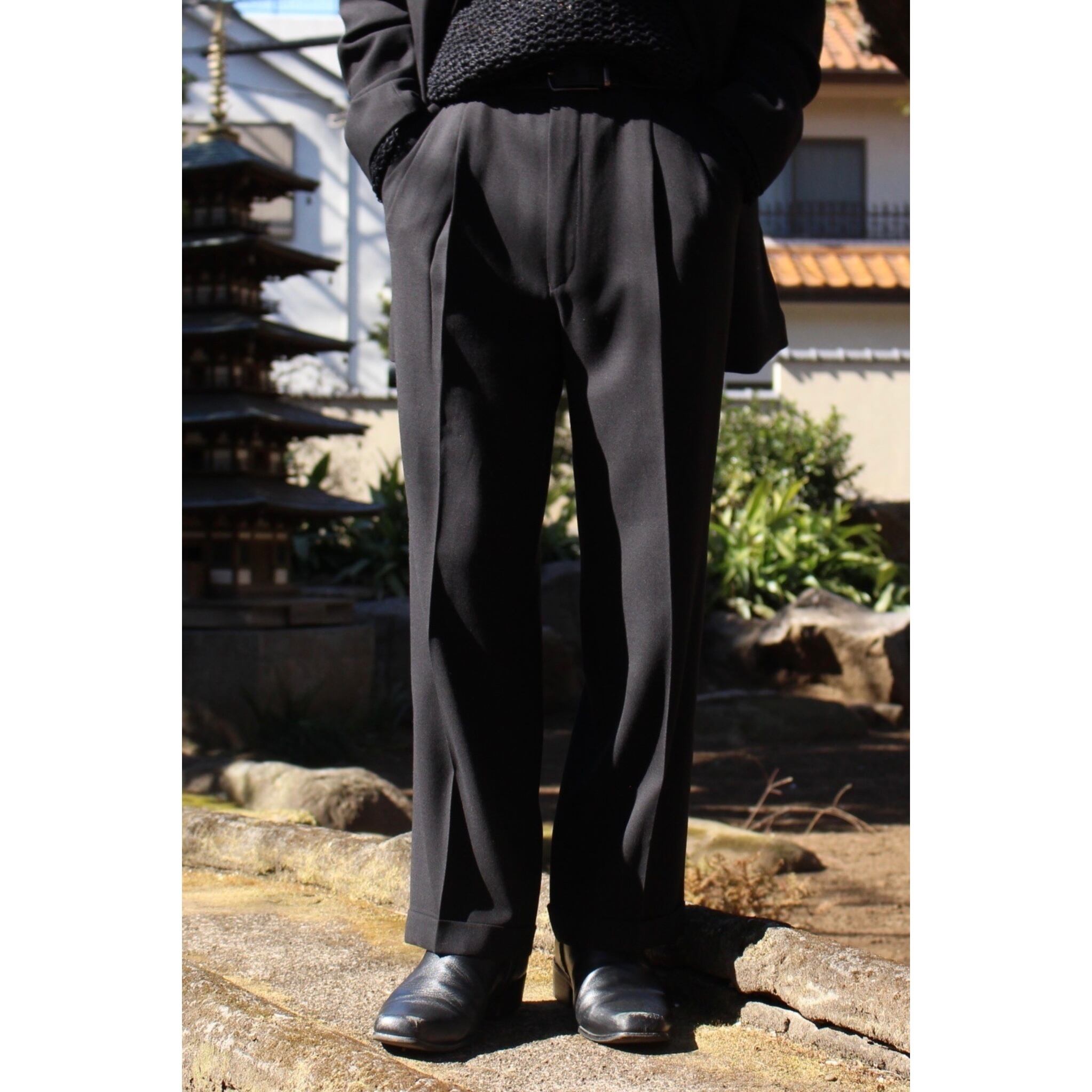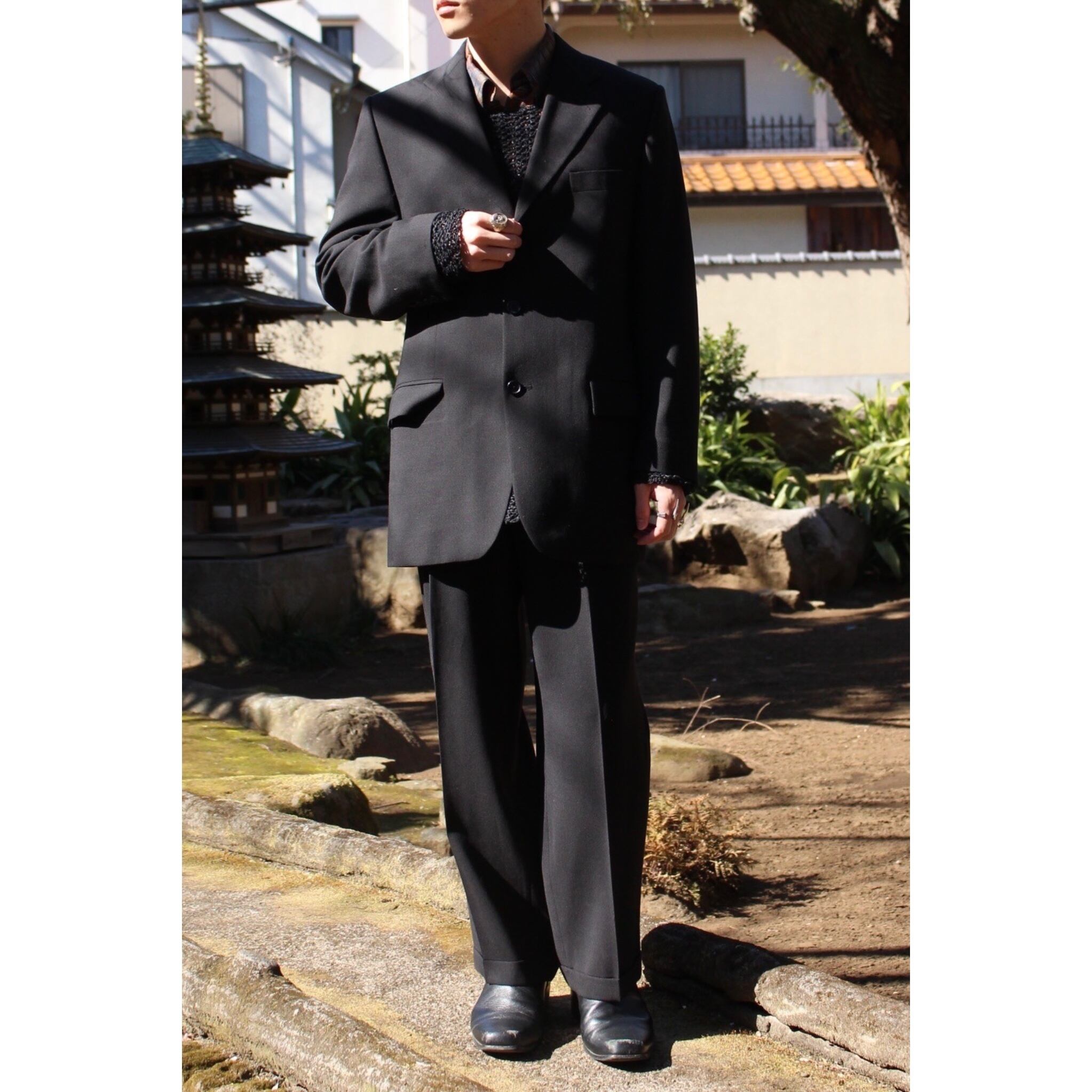 【COU】2-piece black suit set up / single 3-button jacket & 2-tuck wide straight slacks-6130-