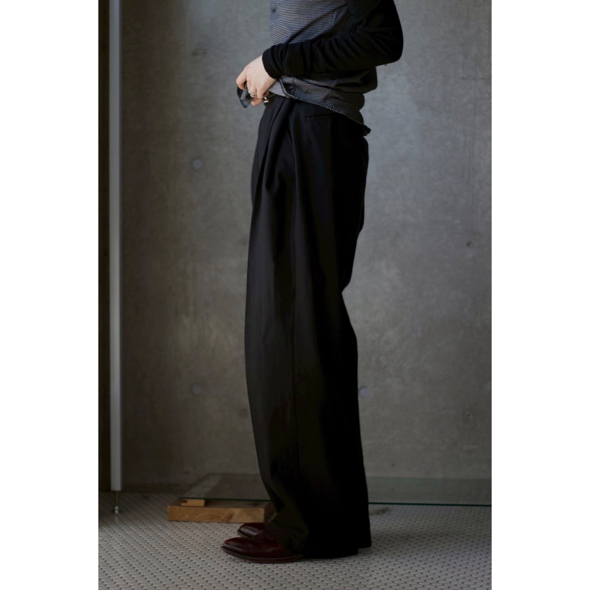 ストンと落ちるワイドテーパードシルエットが美しい