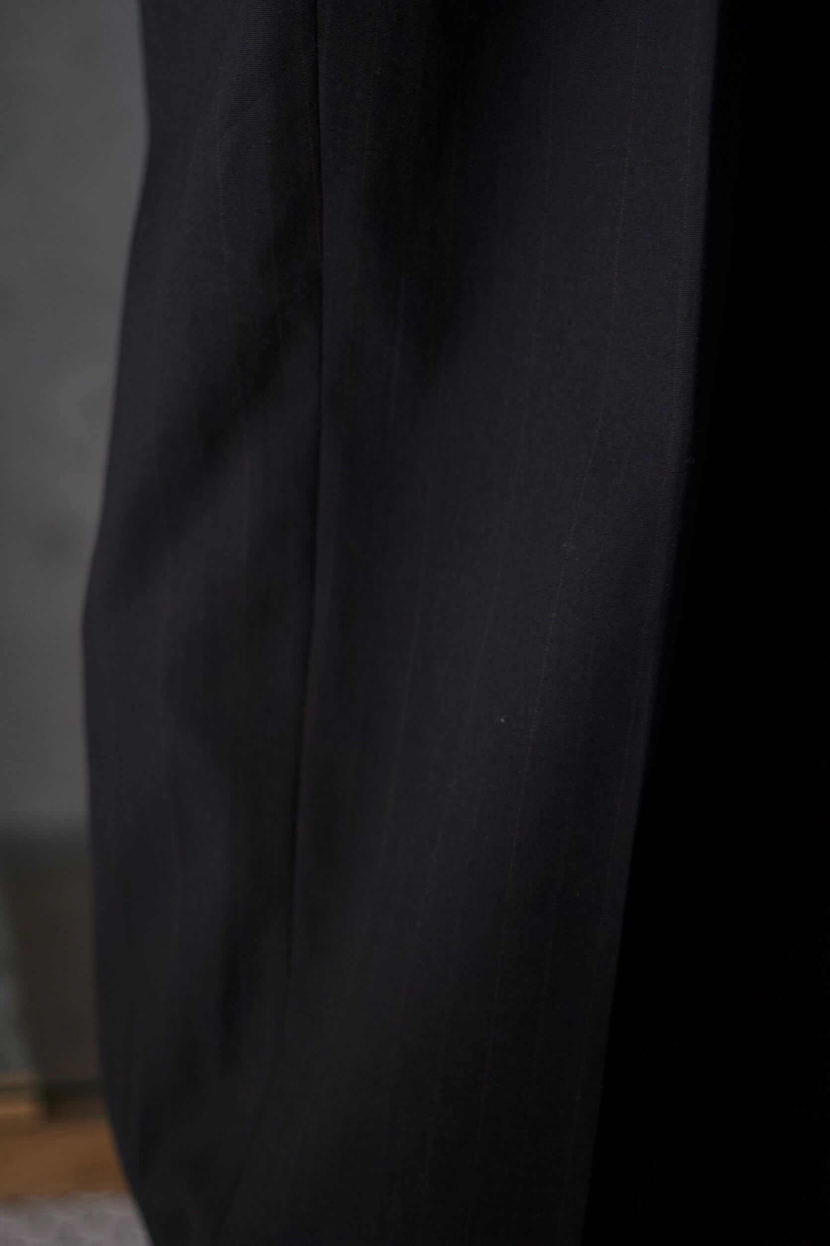 近くで見るとはっきりと見え、遠目で見るとワインレッドがさりげなく見える上品なピンストライプ☺︎