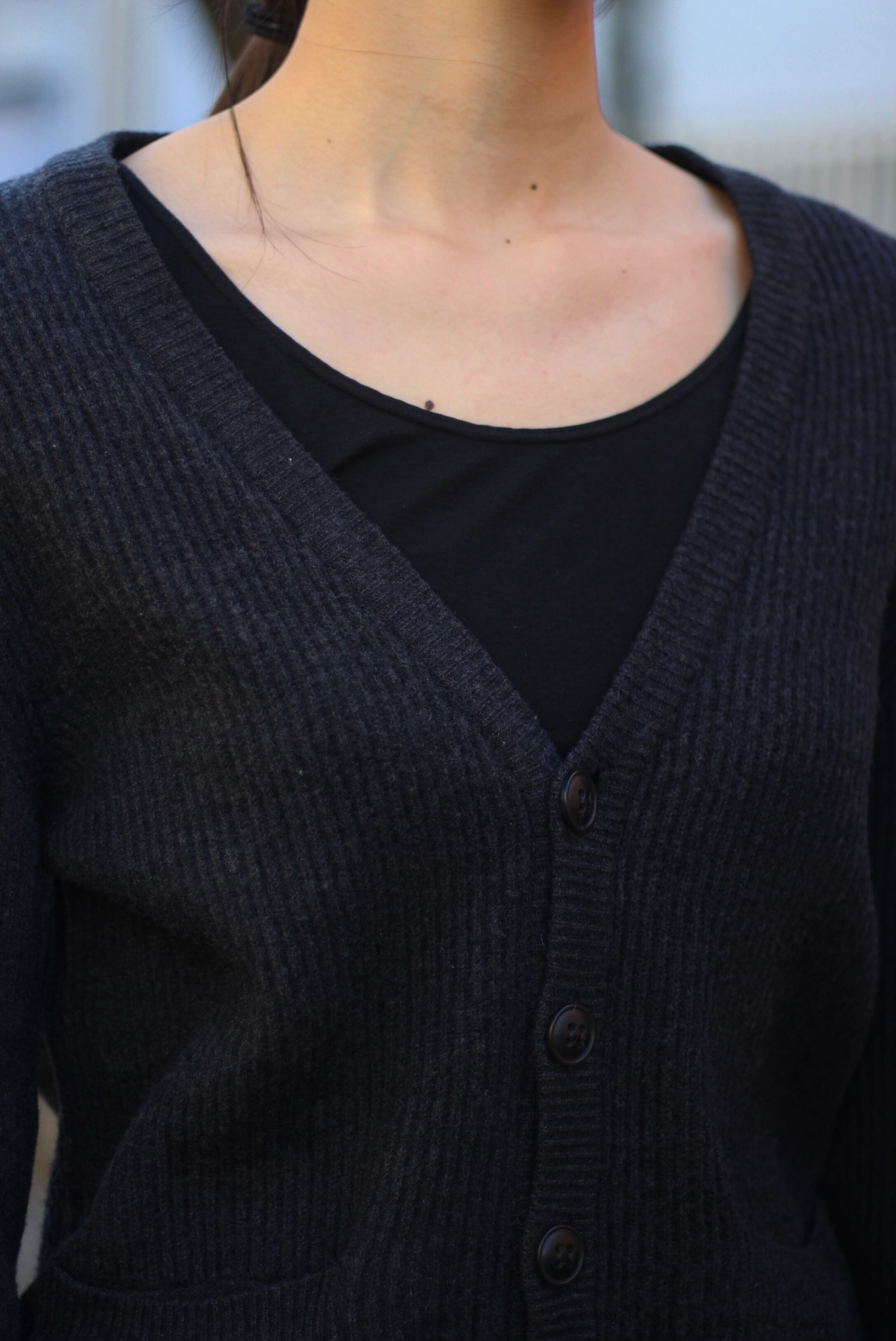 チャコールグレーなのでブラックとは違った抜け感を演出し、リブもしっかり絞られていますので、シルエットも◎