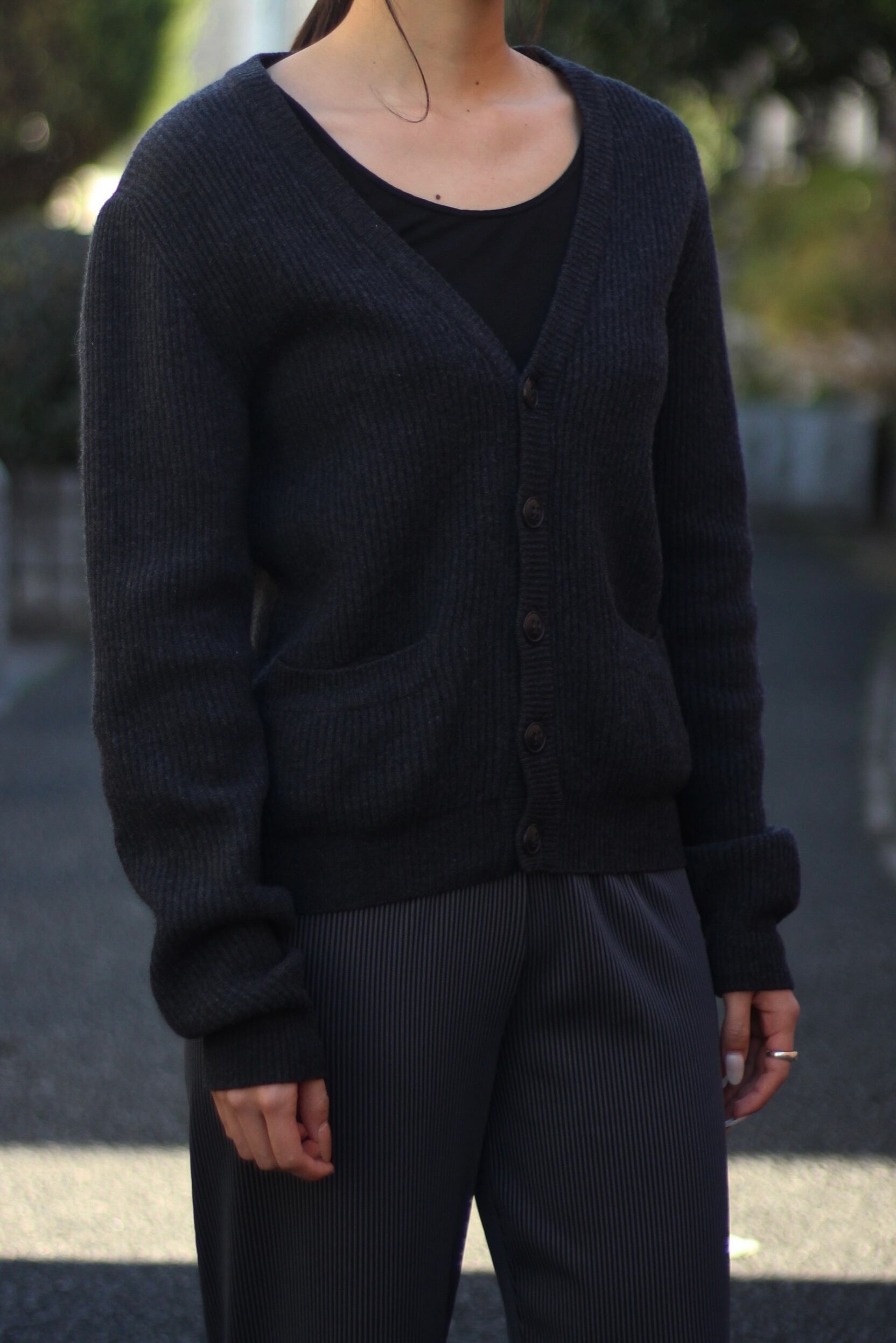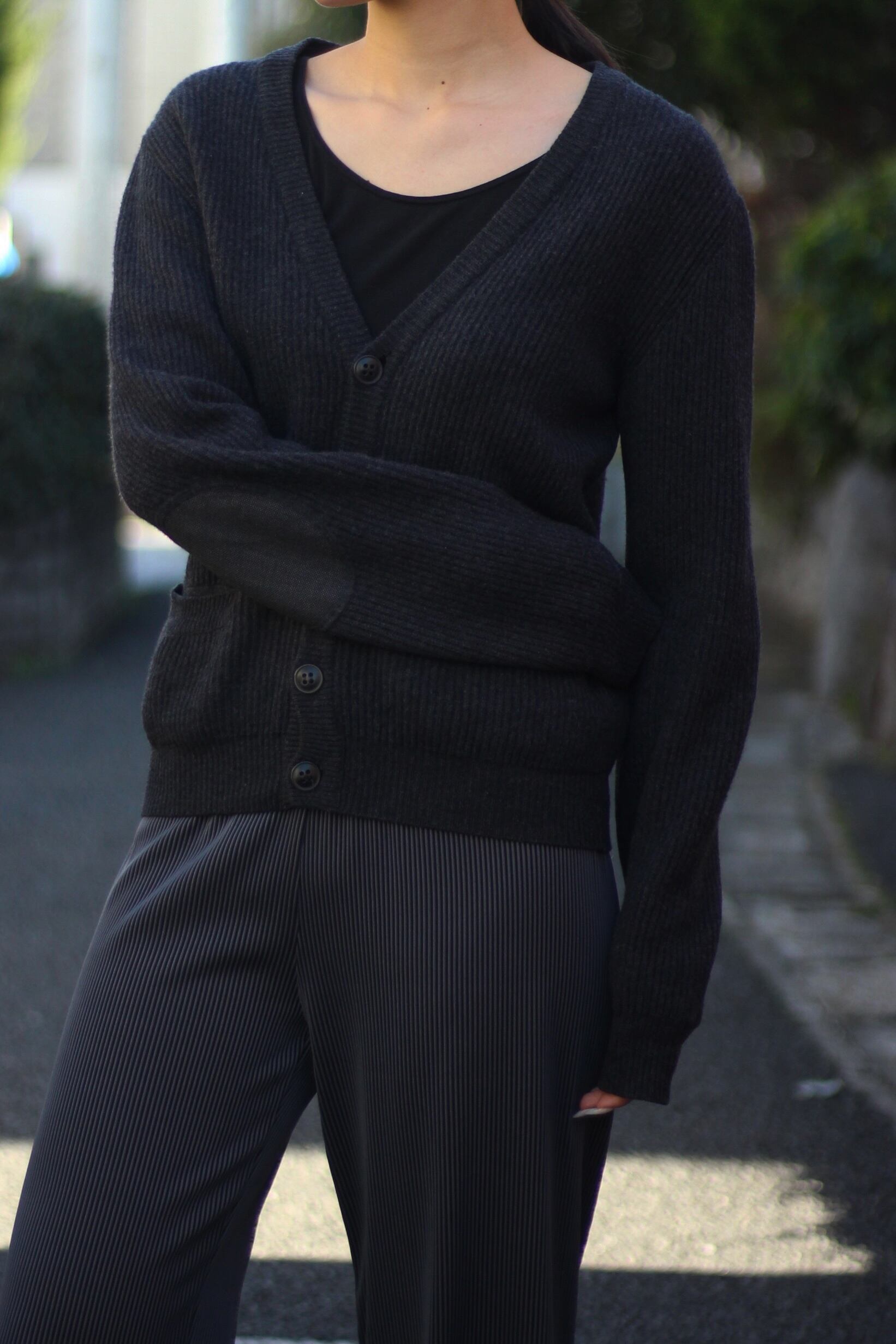 今回ご紹介のカーディガンもエルボーパッチが特徴的な一着。