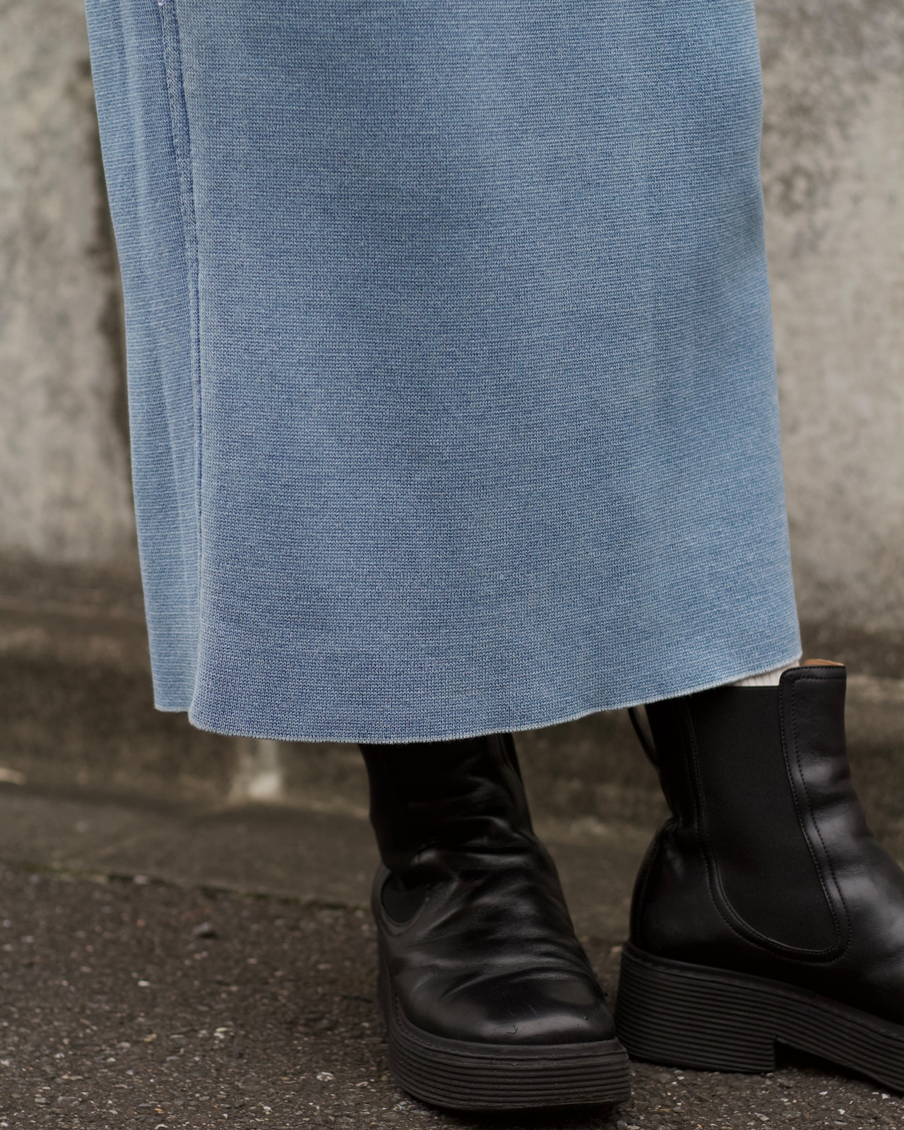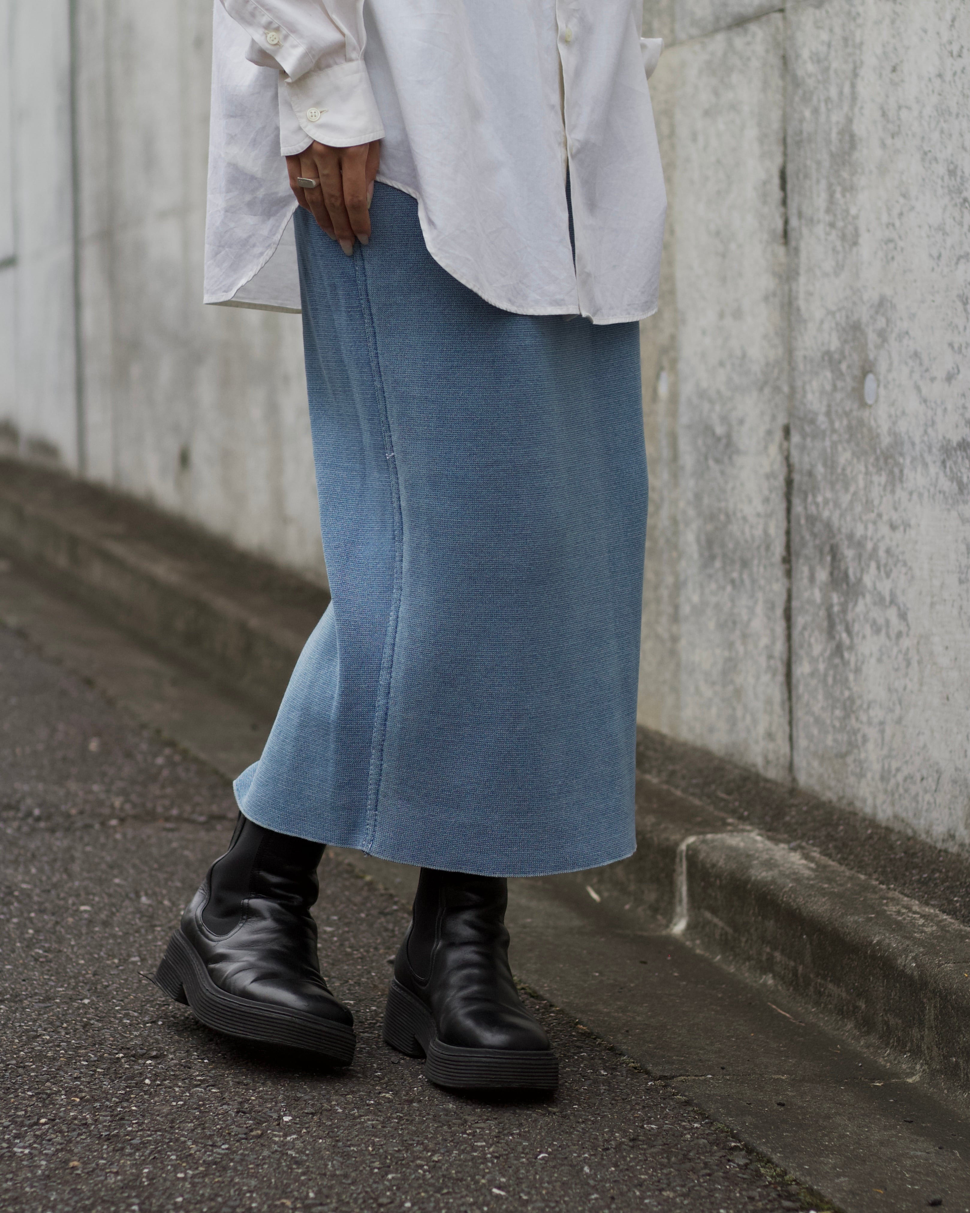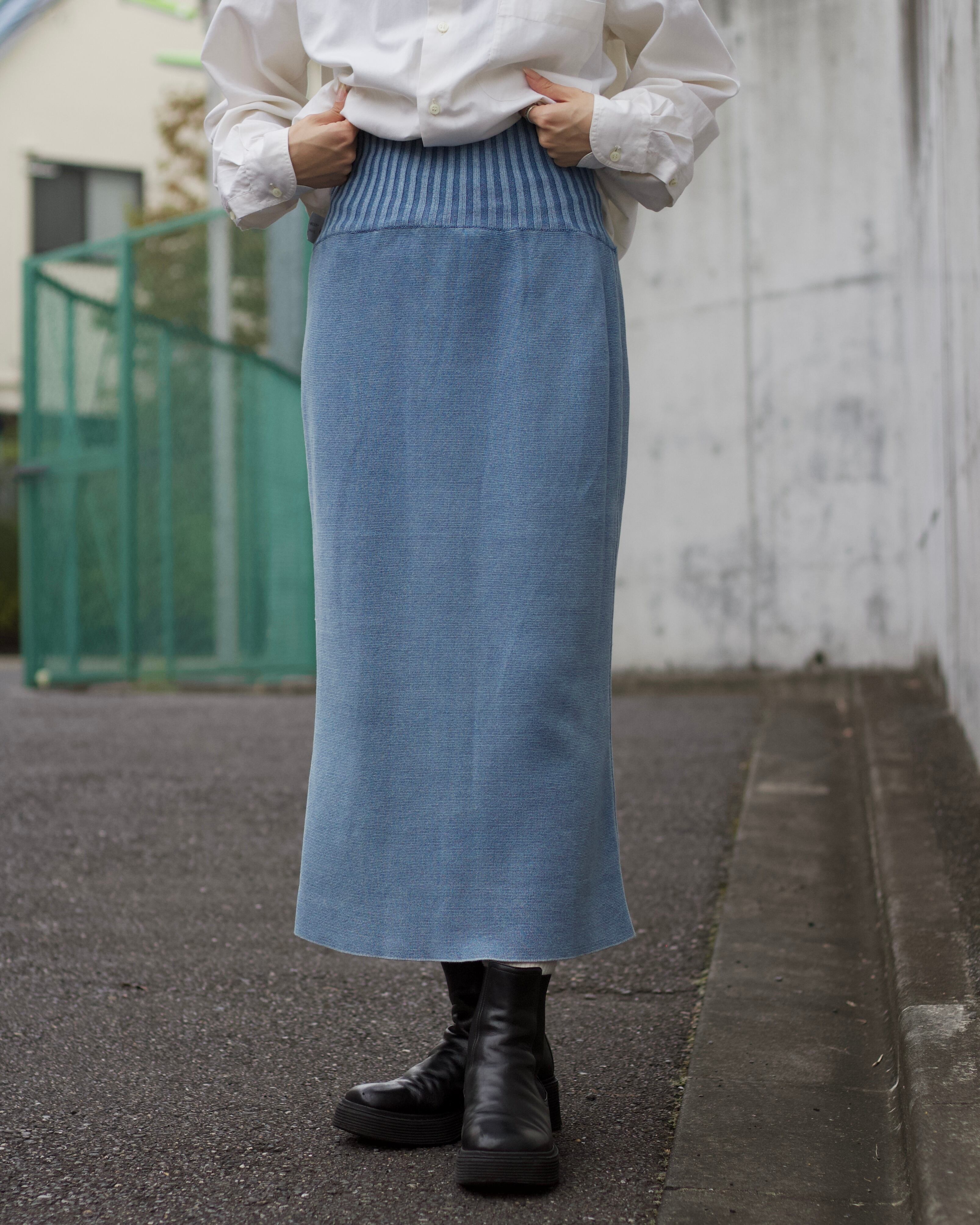 【MAKE MY DAY】Fade light blue color lib knit tight skirt-8450-