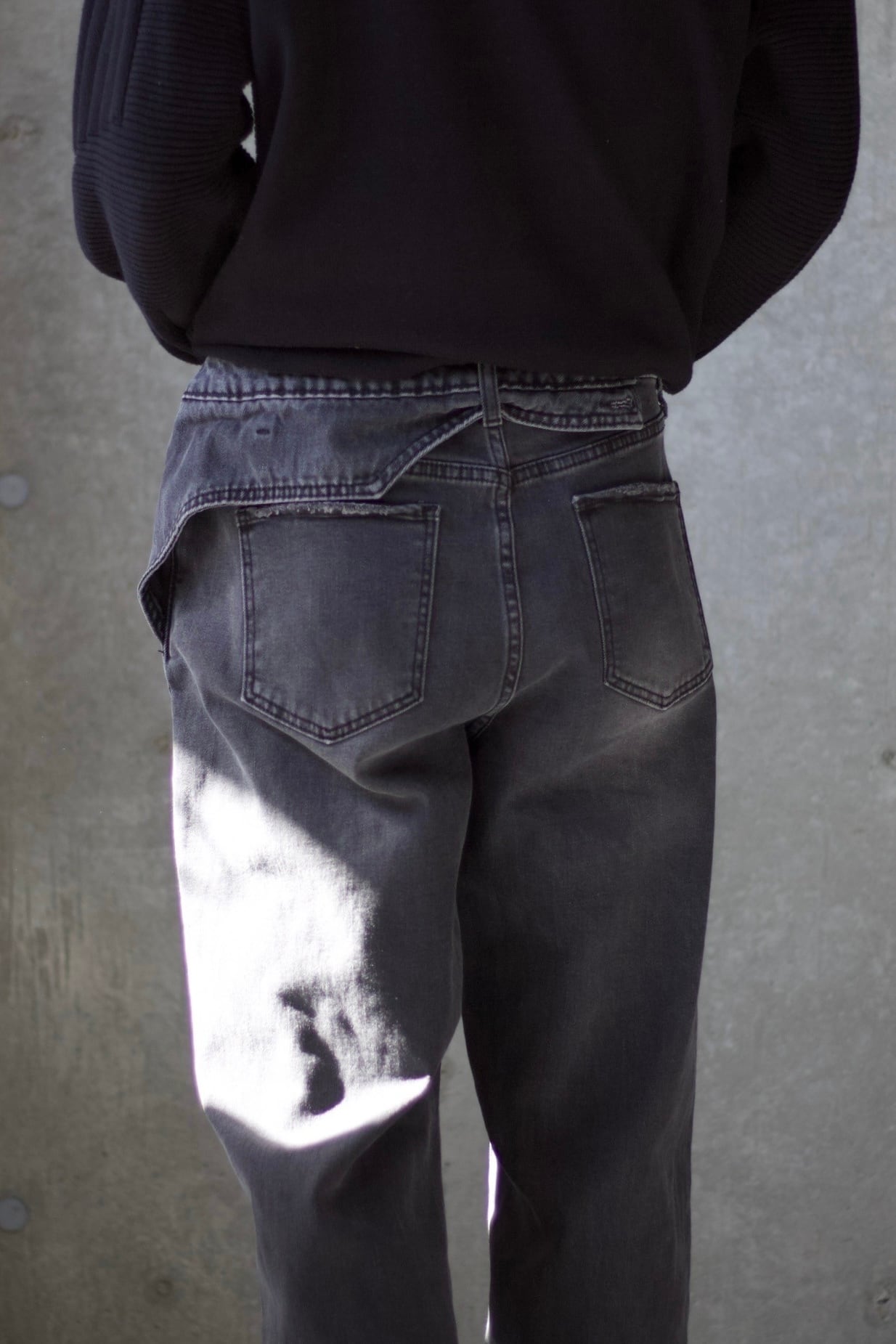 【COUOTSU】layered design fade black wide denim pants -1711-