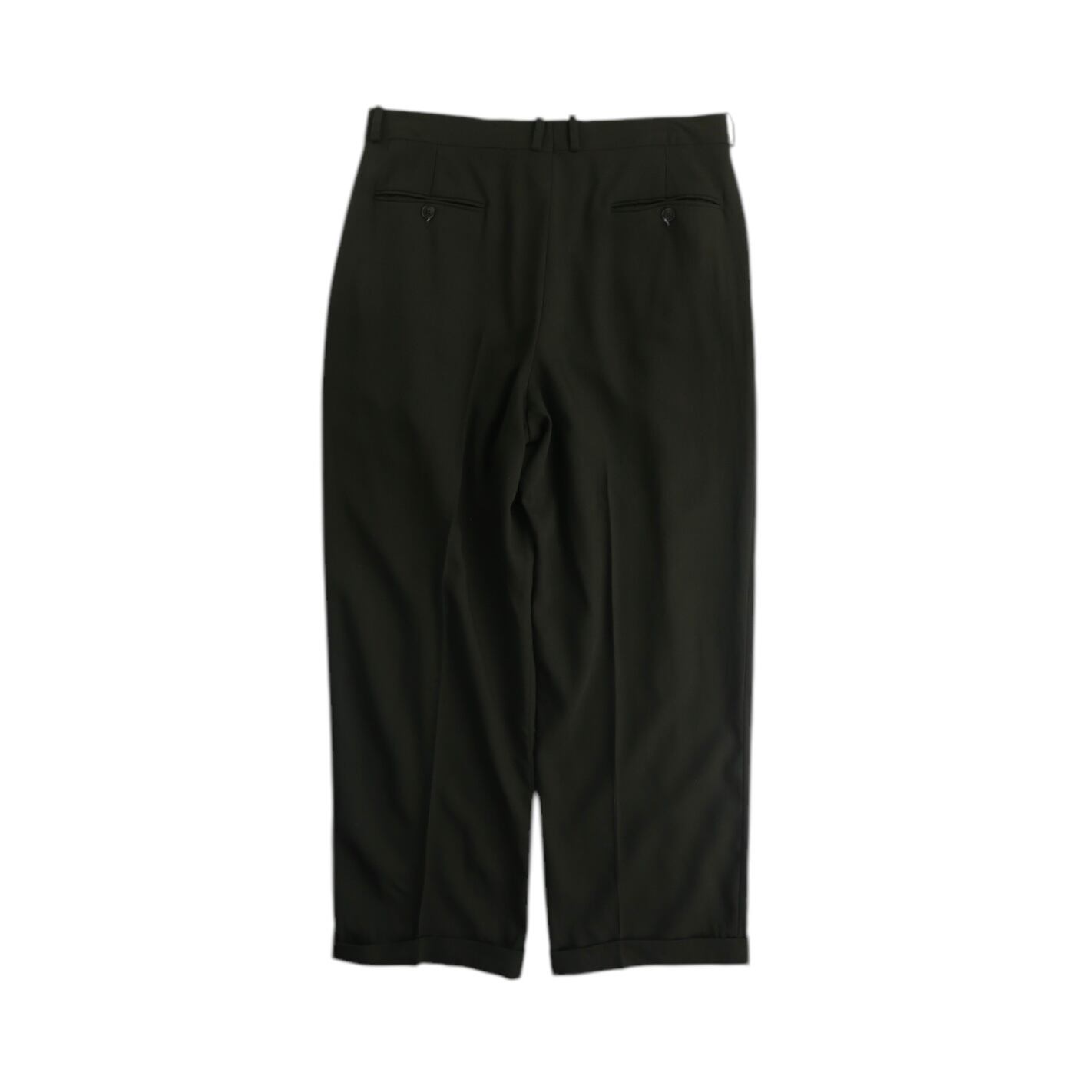 【CUBA】1990s dark green color "toromi" 2tuck wide slacks-8394-
