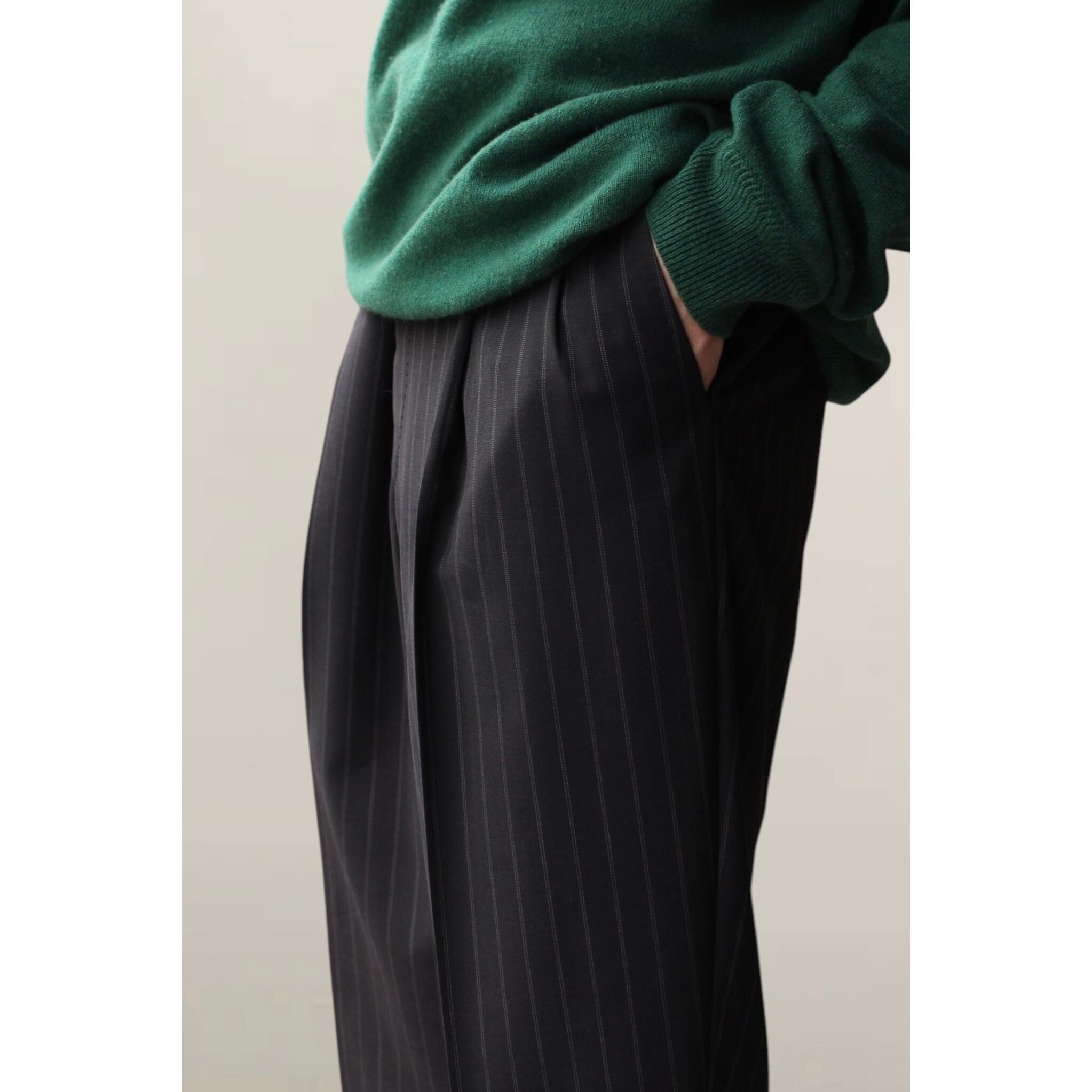 ストライプの入り方もさりげなく何を合わせても邪魔をしない大人な風合い。シルエットも裾までストレート的に綺麗な形です☺︎