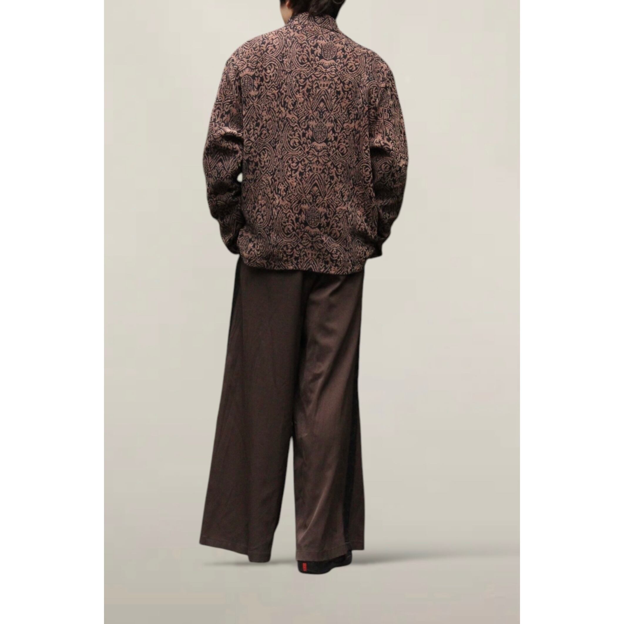 羽織り物として扱いやすくワイドなスラックスやフレアによく合います。薄手の生地に加えて古着らしいペイズリーのような総柄パターンも素晴らしい。。