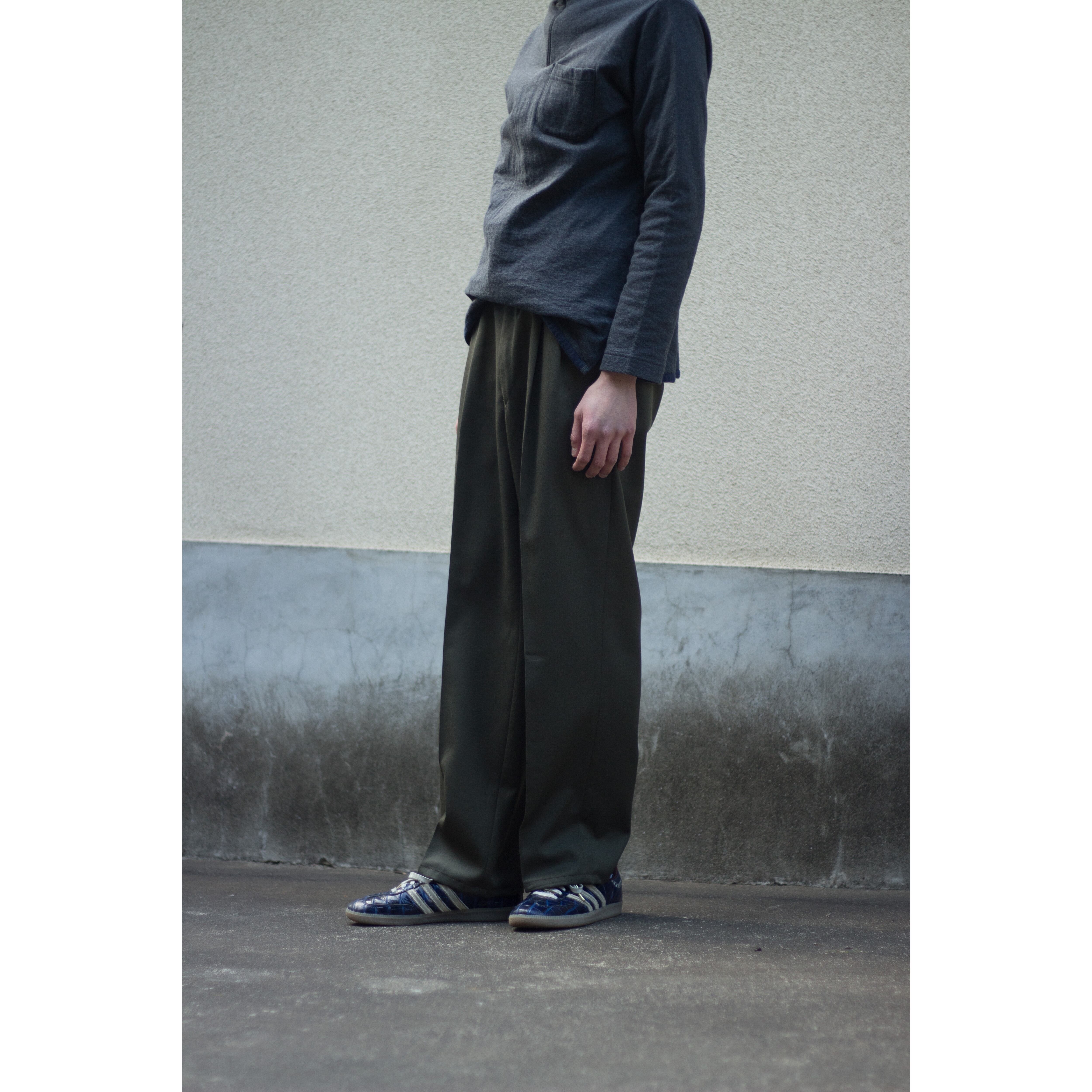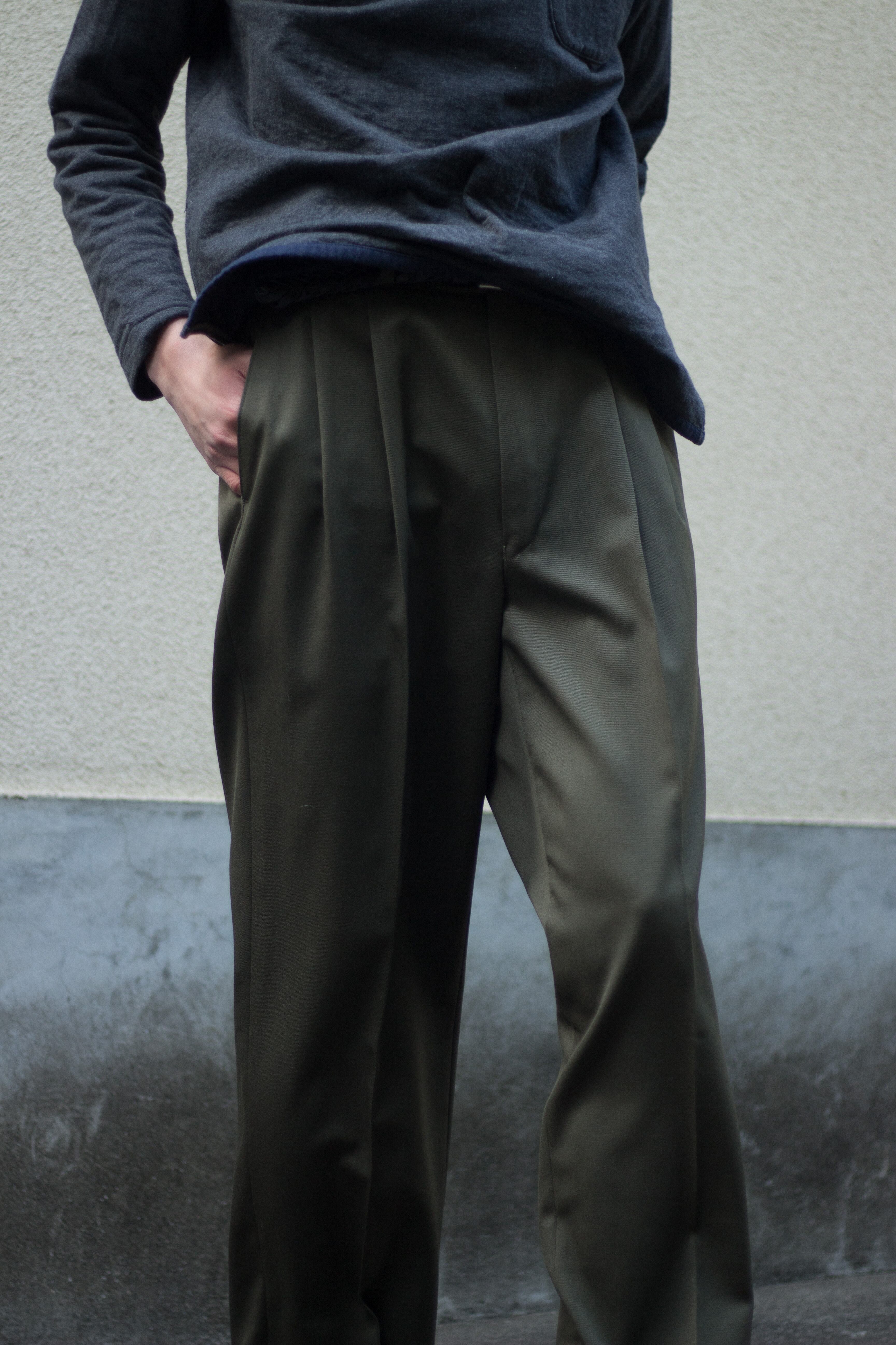 オールシーズン間違いないとろとろなファブリックに落ち着きのあるカーキカラーに飽きのこないワイドストレートシルエットは最高すぎます。