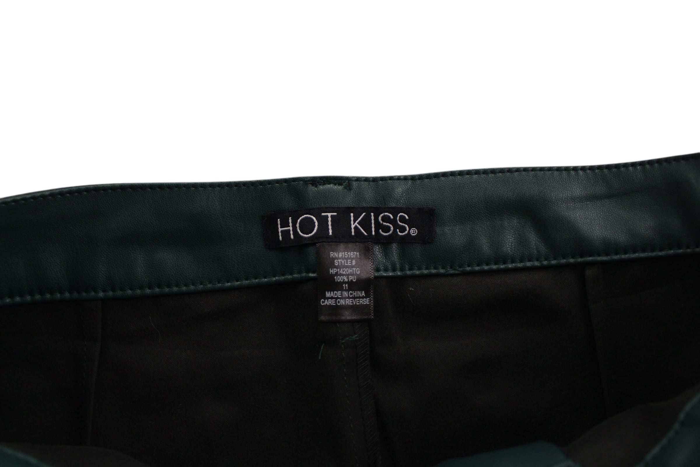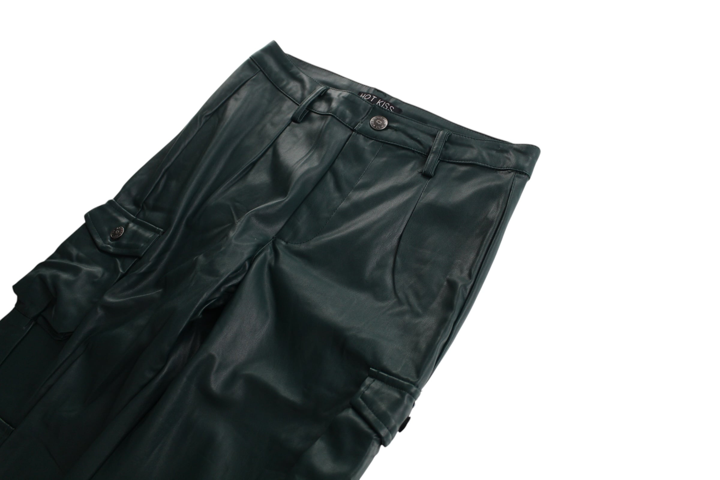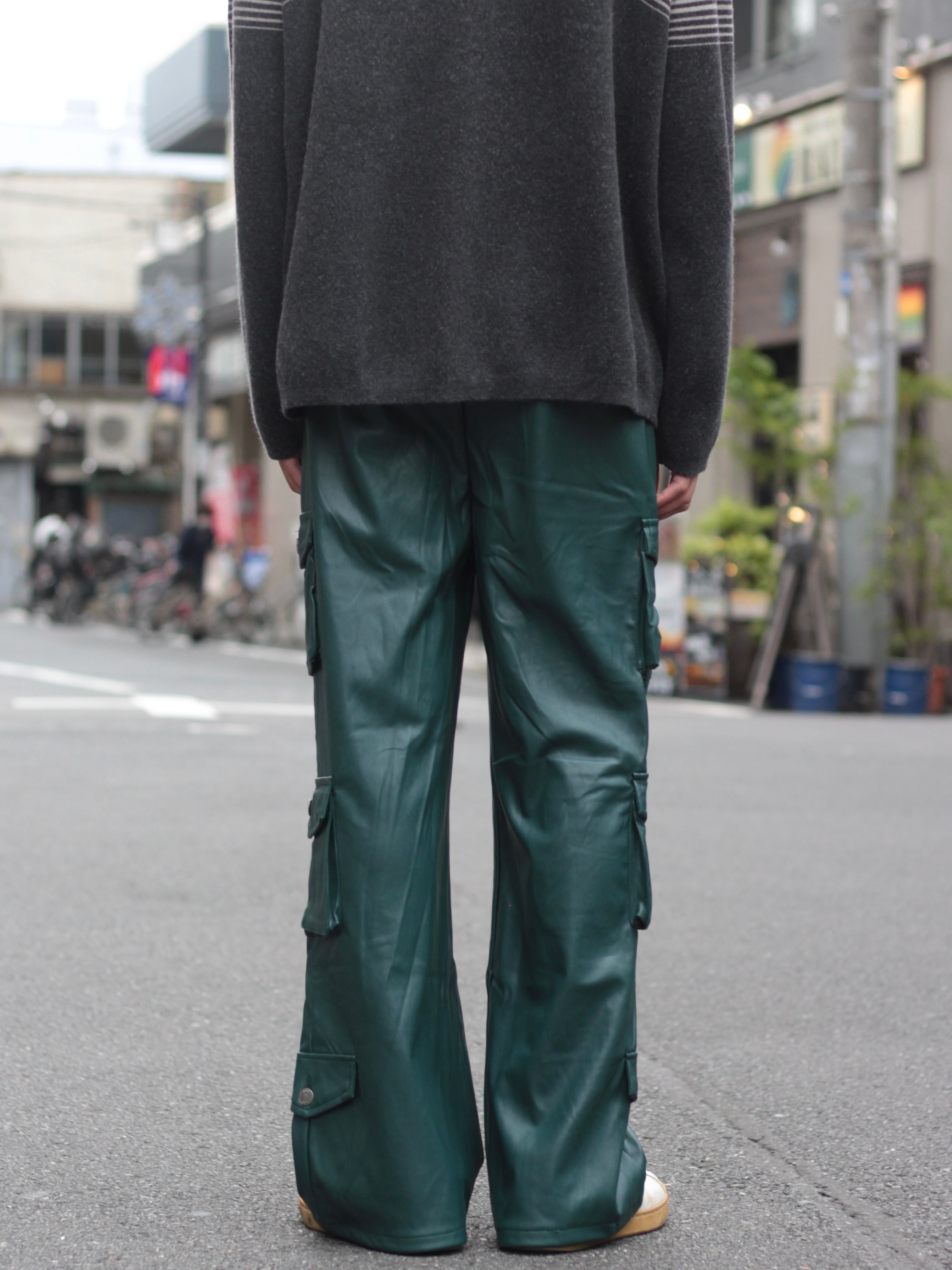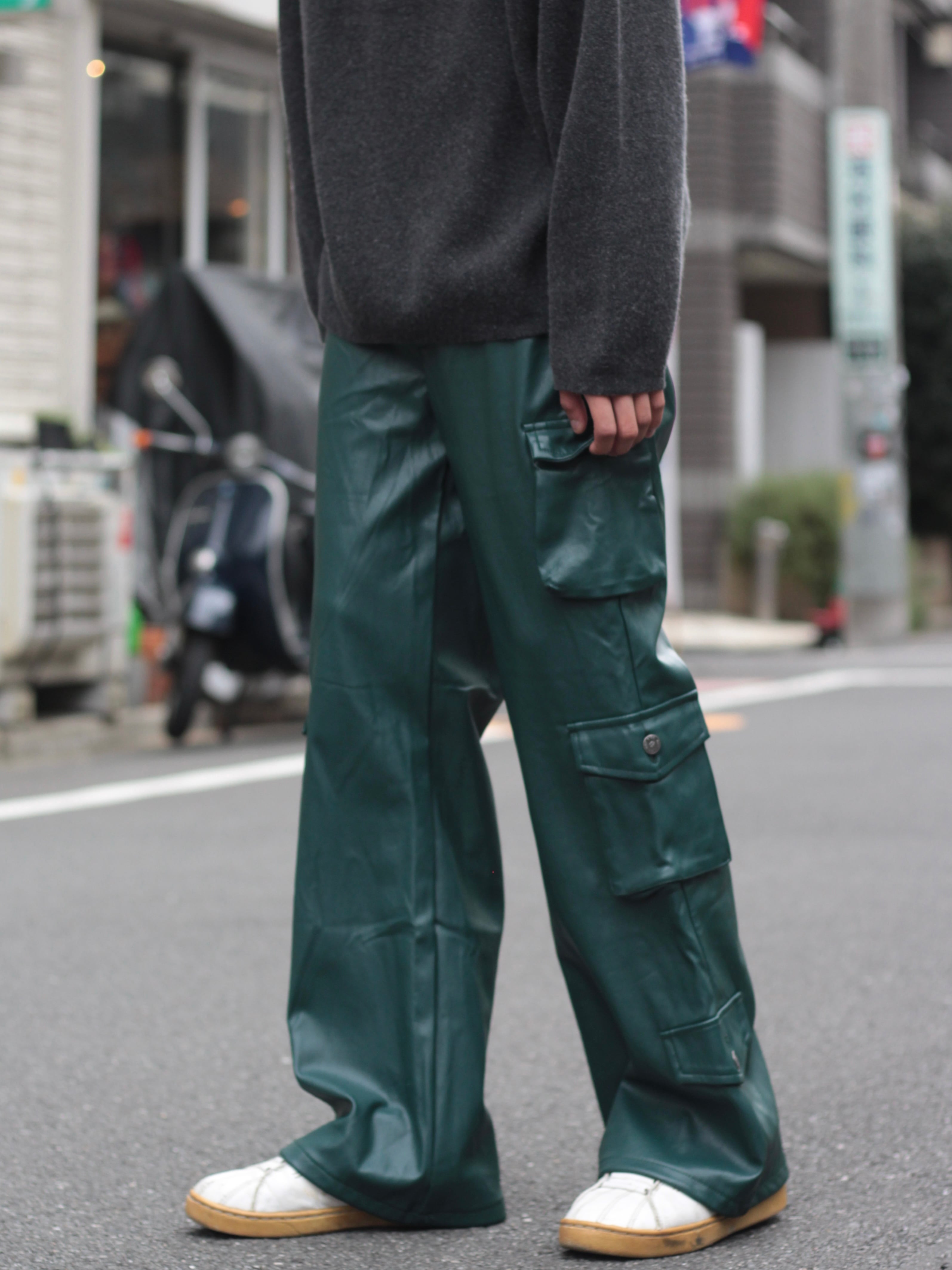 ビリジアンカラーのフェイクレザーのカーゴパンツ