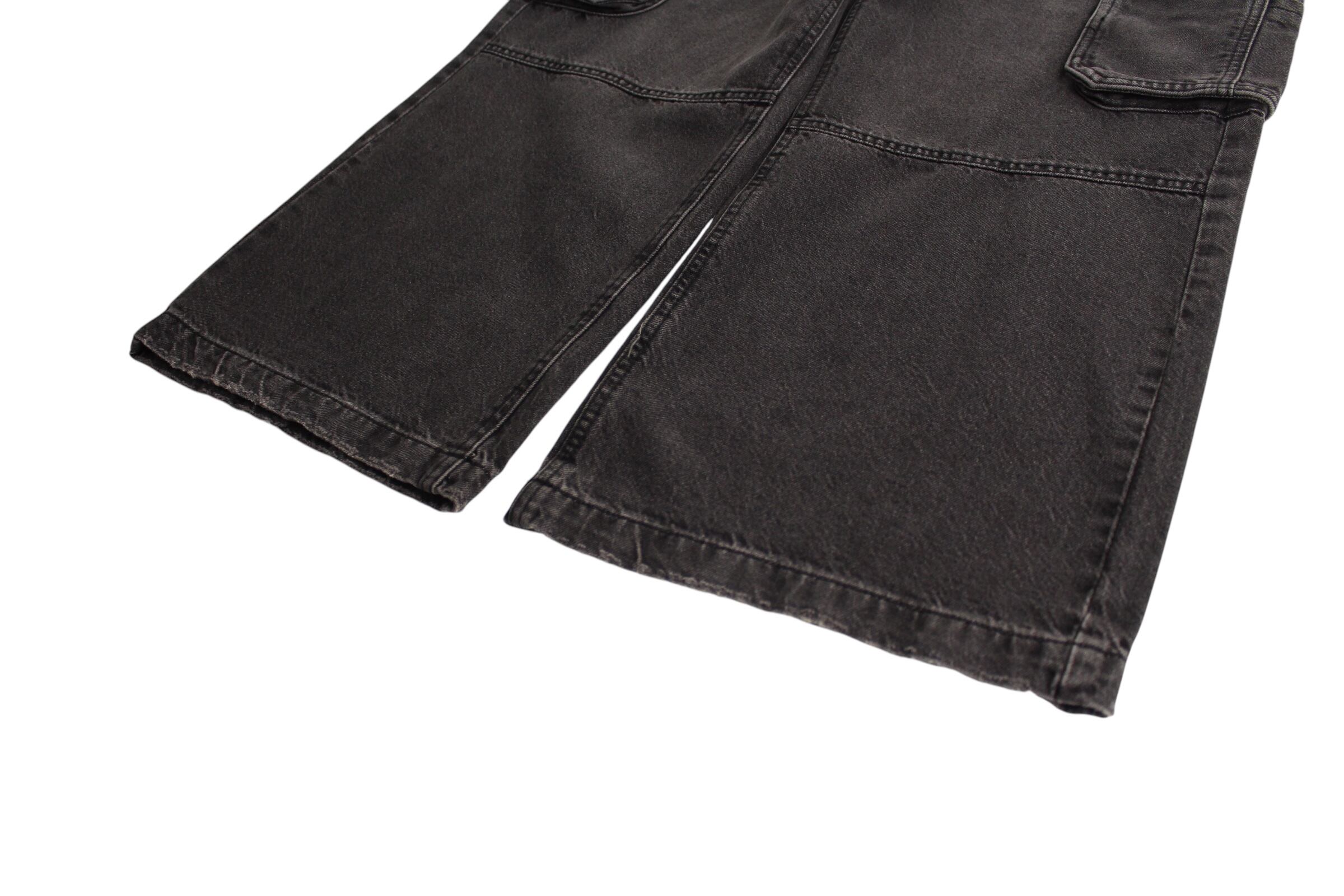 【MAKE MY DAY】Wide buggy cargo design fade black denim pants -2330-