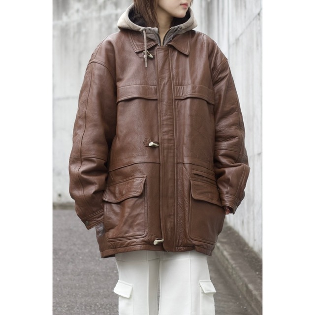 【商品説明】 程よくワイドなシルエットで、厚手のインナーを合わせても着やすいサイズ感。 光沢のあるレザーが放つ重厚感と、シンプルながら存在感のあるディテールがめちゃくちゃかっこいい、、 ユニセックスで着用可能でデニムやスラックスなど、スタイリング次第でストリートにもモードにも振れる万能アウター。 秋冬の主役アウターとして間違いなしのアイテムかと。 ぜひ! 【ブランド】 CONTEXT 【カラー】 ブラウン (※お使いのモニター環境により、画像の色味が実物と異なって見える場合がございます。) 【素材】 レザー.ナイロン.ポリエステル 【サイズ】 表記サイズ : L 肩幅 60cm / 身幅 70cm / 袖丈 63cm / 着丈 85cm ※測定における若干の誤差はご了承下さいませ。 着用モデル: 161cm 【状態】 A S:新品またはdeadstock未使用品。 A:着用感も少なく状態良好。 B:ほぼ綺麗な状態だが小さな汚れやダメージがある。 C:使用感が強く、ダメージや汚れがある。 ※状態の感じ方には個人差がございますので、参考程度にお考え下さい。 ※当店の商品は一部ブランドを除いた他は全て古着となっており、お客様都合での返品交換は承っておりません。あくまで古着であるということをご理解の上、慎重にご購入下さい。 ※尚、実店舗でも販売しております為、掲載されていても時間差で在庫切れになる場合がございます。予めご了承下さい。 (取扱店 : MAKE MY DAY) Instagram : makemyday_shimokitazawa